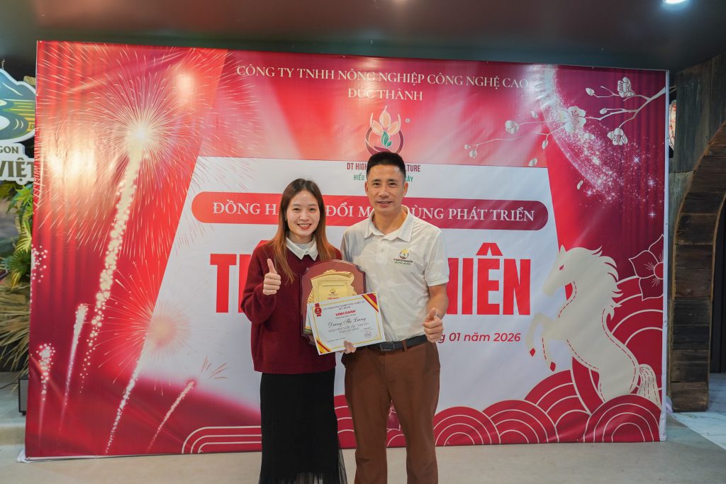 Hòa chung không khí rộn ràng của những ngày cuối năm, vừa qua Công ty TNHH Nông nghiệp Công nghệ cao Đức Thành đã tổ chức buổiTất niên thân mật chào Xuân mới. Sự kiện không chỉ là dịp để nhìn lại chặng đường đã qua mà còn là cơ hội để đại gia đình Đức Thành cùng các đối tác, người thân sum vầy, thắt chặt tình đoàn kết.