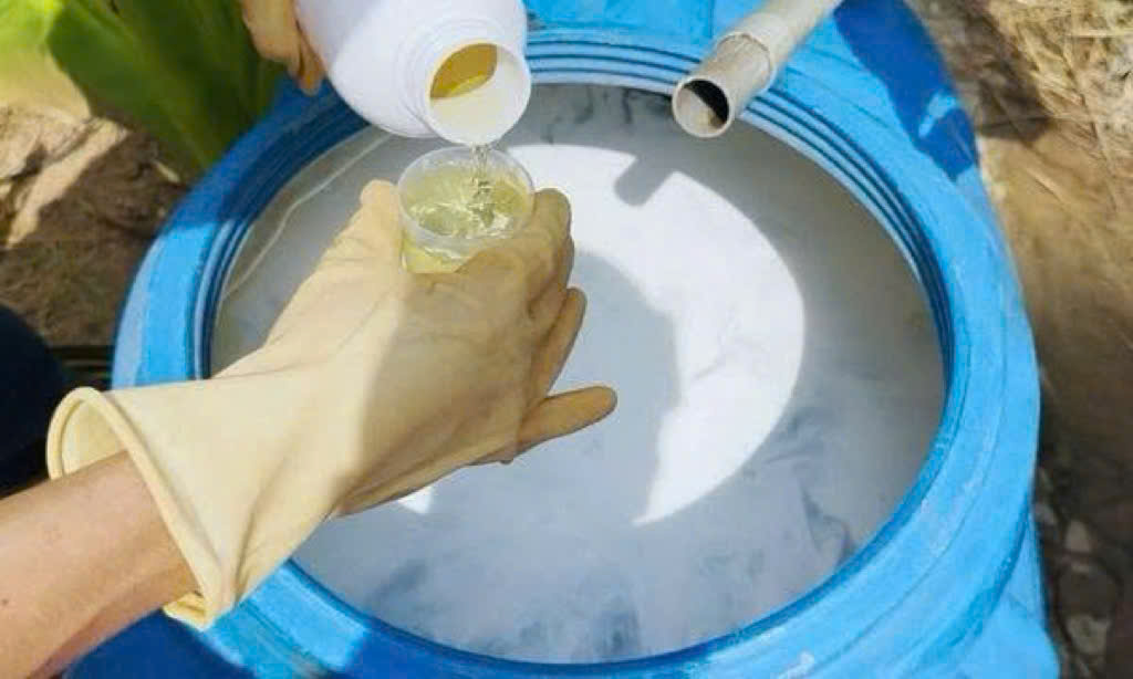 • Bước 2: Pha thuốc dạng bột/hạt (WG, WP) trước, khuấy tan.