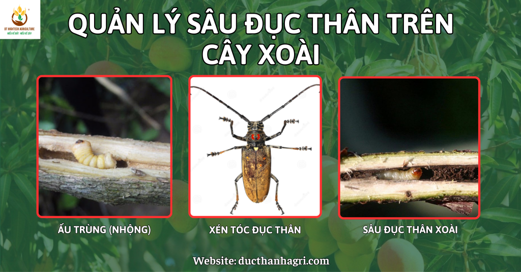 Sâu đục thân là đối tượng gây hại nguy hiểm bậc nhất trên cây xoài. Khác với các loại sâu hại lá, sâu đục thân tấn công vào hệ thống mạch dẫn và mô gỗ, gây ra những tổn thương cơ học nghiêm trọng và thường dẫn đến chết cây nếu không được phát hiện kịp thời.