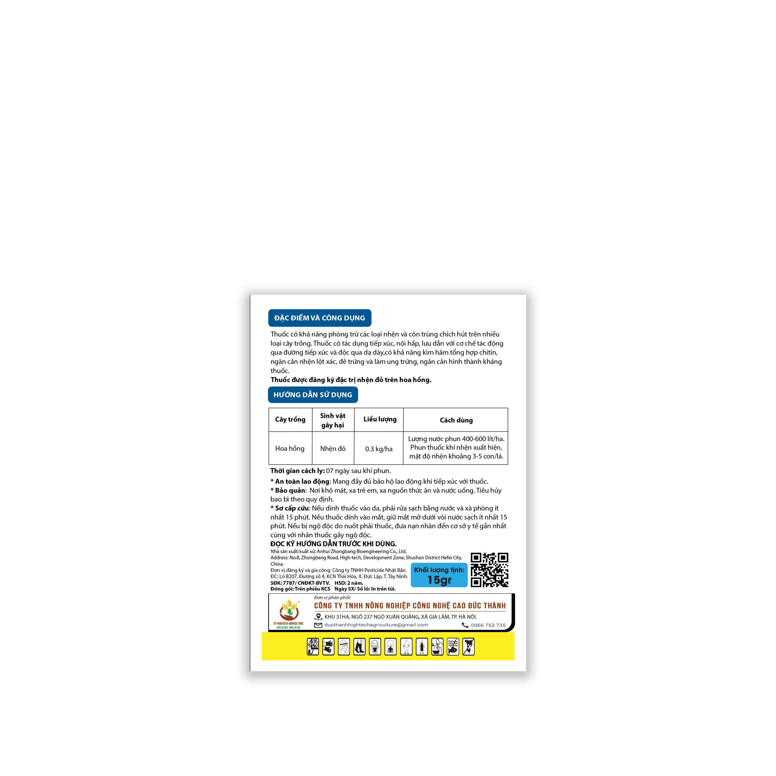 - Thuốc làm ngăn cản nhện lột xác, đẻ trứng, làm ung trứng nhện, diệt cả nhện non và nhện trưởng thành, ít có khả năng gây kháng thuốc.